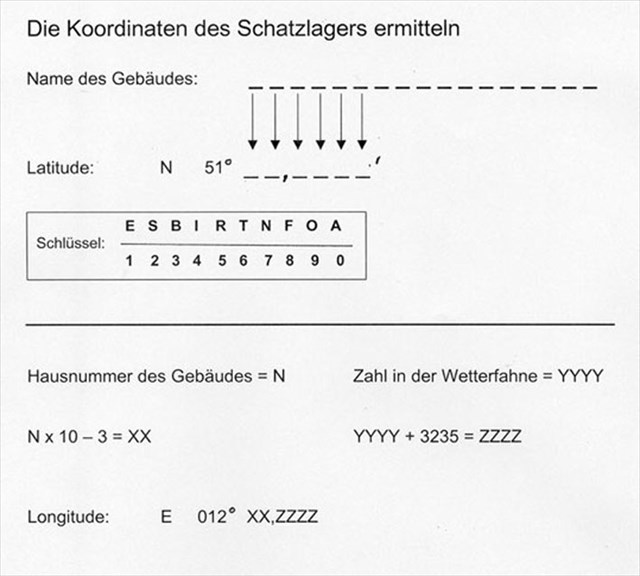 Die gegebenen Koordinaten führen zu einem Gebäude, dort gibt es viele Informationen. Das Auto/Motorrad kann dort geparkt werden. Die Beschreibung (siehe Foto!) sollte man ausdrucken und vor Ort für die Lösung benutzen. Bei der Suche sollte man auf eine kleine Wanderung eingerichtet sein. Das Ziel (der Cache) befindet sich etwa 3,5 km (Fussweg!) entfernt an einem einsamen Platz mit Aussicht.